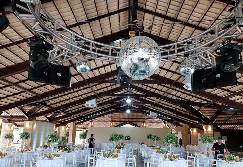 Capacidade de 200 a 600 pessoas, com gerador de energia.