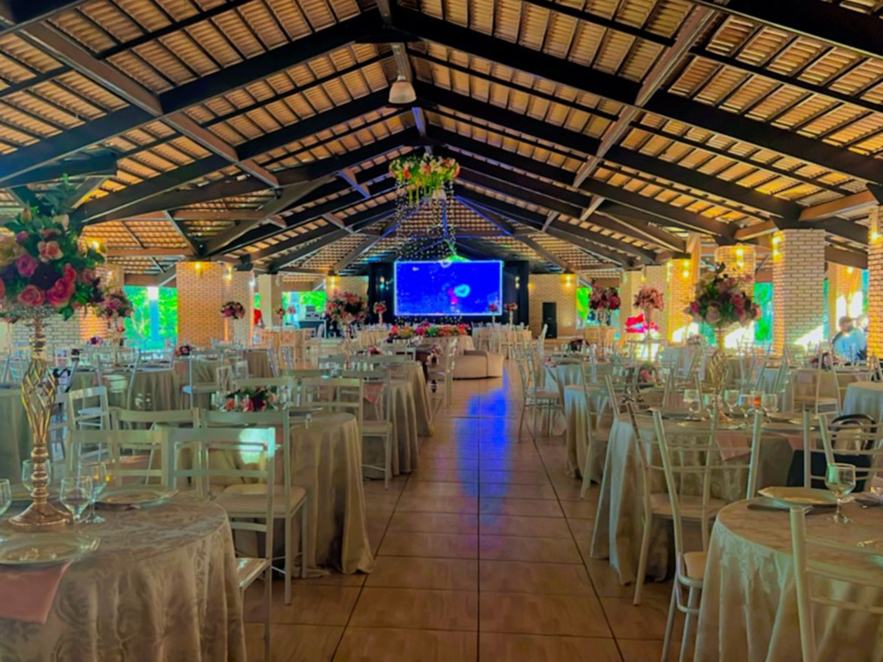 Salão com capacidade para 400 pessoas, iluminação arquitetura cozinha industrial, gerador de energia.