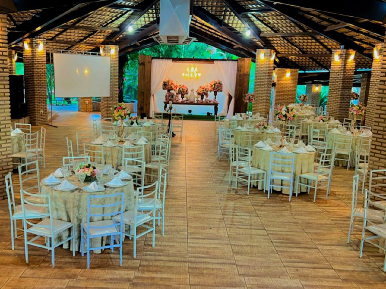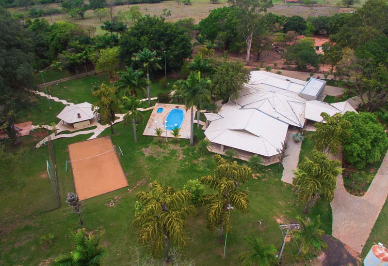 Local com casa avarandada, com quiosques acoplado, churrasqueira, campo de futebol, piscina, playground e quadra de vôlei de areia, com gerador de energia.